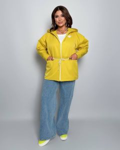 Куртка з капюшоном на блискавці , з кишенями , рукав на гумці , талія на фіксаторі .