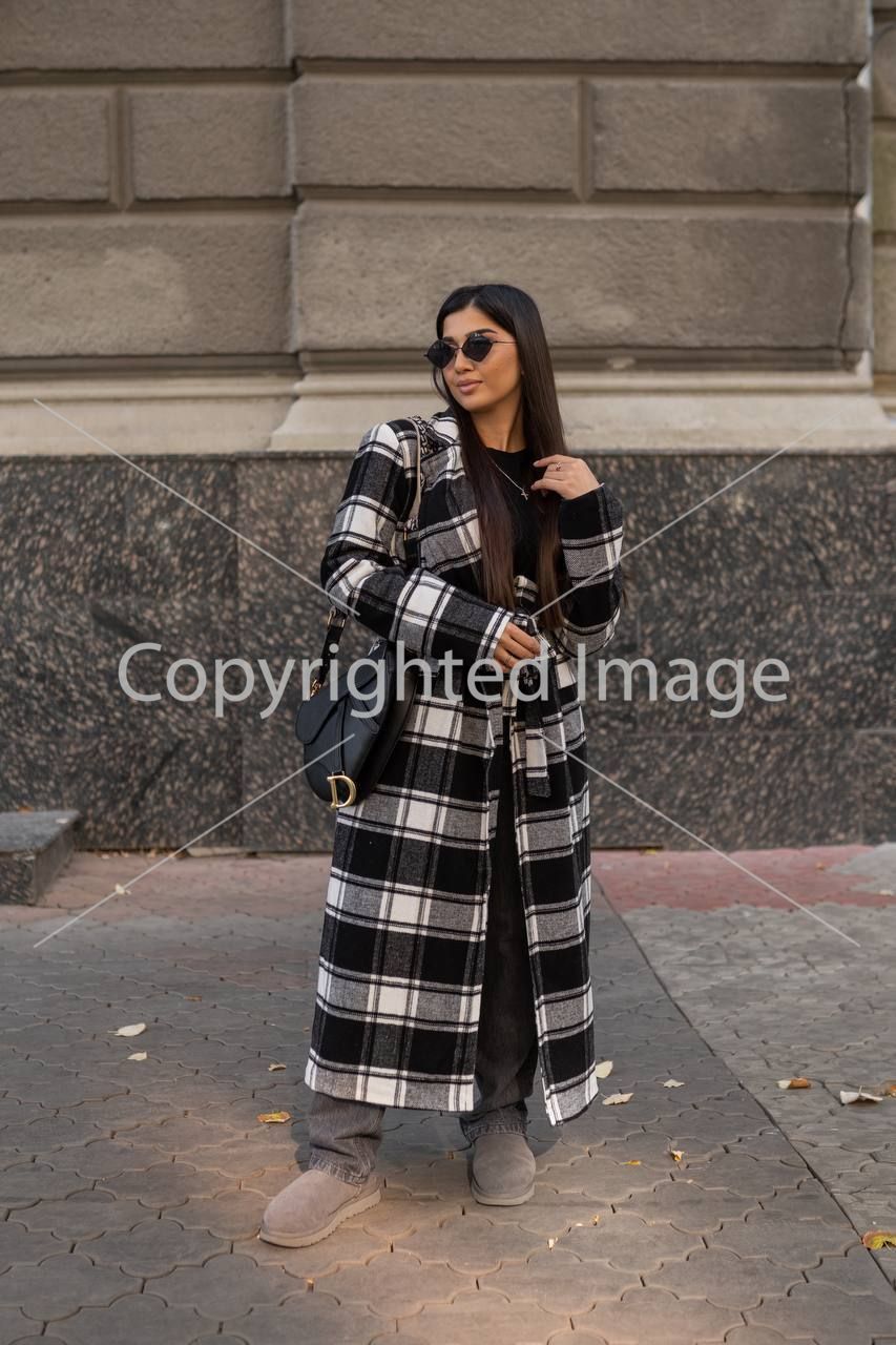 матеріал: вовна 30%, акрил 45%, лавсан 25%. Підкладка стьобана на синтепоні 100. Крій оверсайз, чоловічий двобортний піджак (тренд цього сезону). Підплечники вшити. гудзиків немає, одягається на запах. Довжина виробу 124 см, довжина рукава – 63см