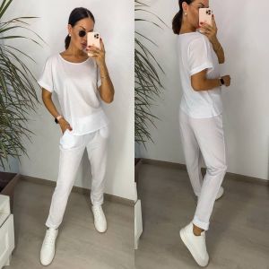 штаны на резинке, футболка разлетайка с разрезами по бокам