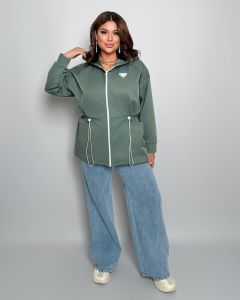Куртка з капюшоном на блискавці , з кишенями , рукав на гумці , талія на фіксаторі .