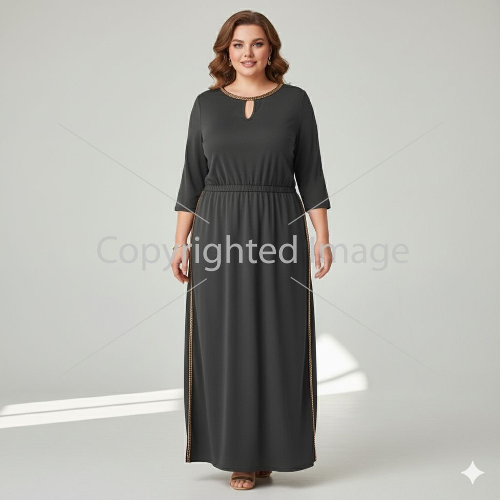 Сукня максі французський трикотаж,з карманами,оздоблена ланцюжками по горловині і боковим швам,талія на резинці