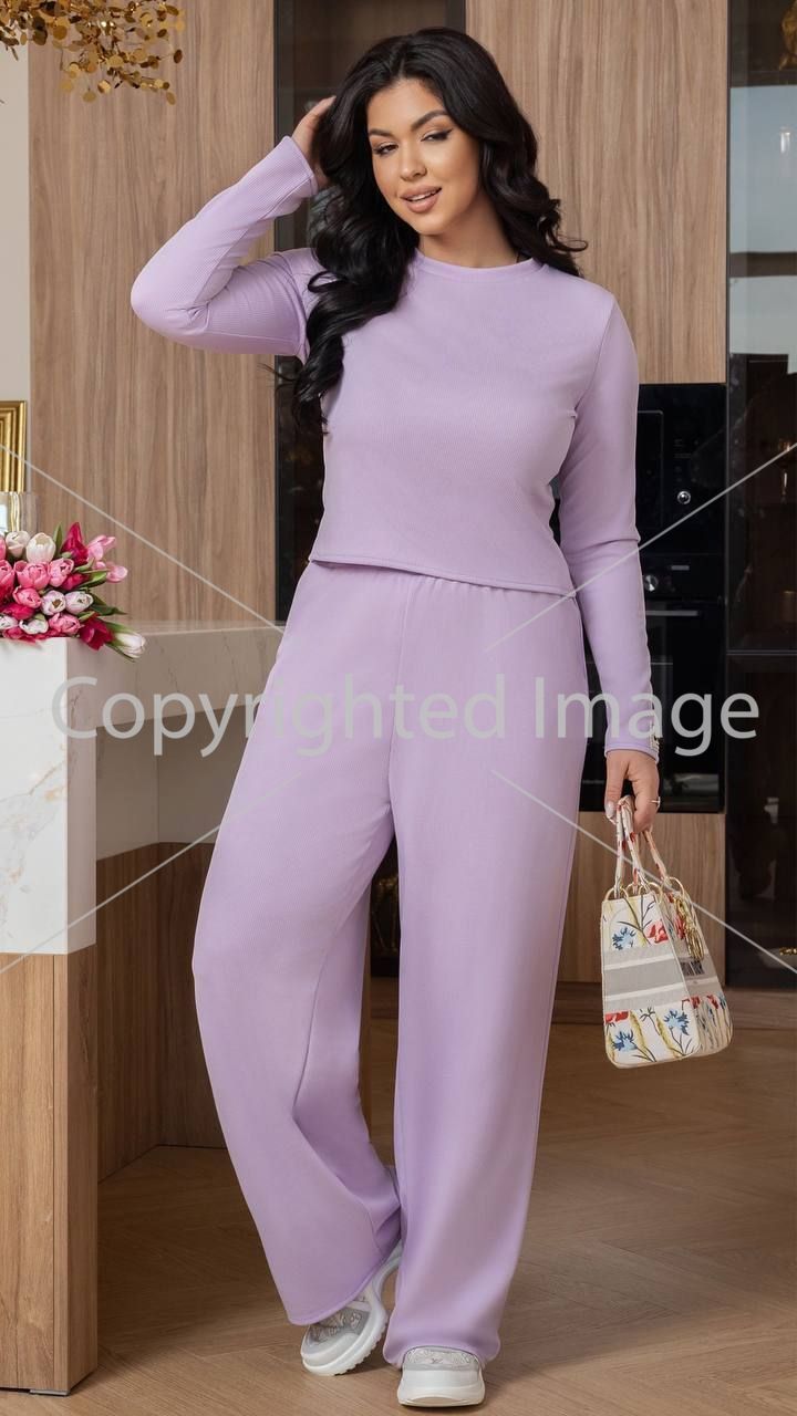 Практичний стильний костюм , штани прямого покрою , з бічними кишенями , пояс на гумці . Кофта прямого покрою . Тканина гарної якості , зносостійка , приємна на дотик , гарно тягнеться .