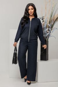 Практичний костюм , штани прямого покрою , з бічними кишенями , пояс на гумці . Кофта на блискавці , прямого покрою , низ та рукав на манжеті . Тканина гарної якості , зносостійка , не леняє , не кашлатиться , приємна на дотик .