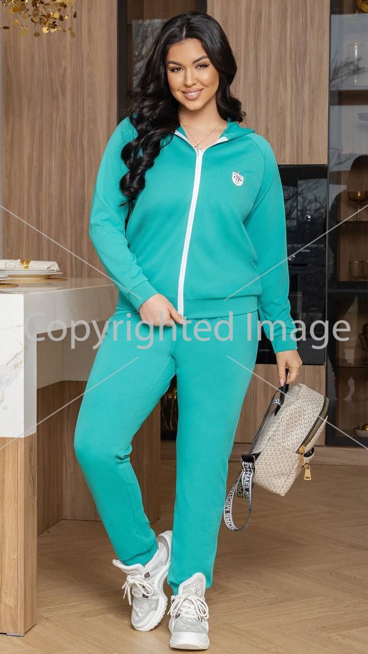 Практичний стильний костюм , штани прямого покрою , з бічними кишенями , пояс на гумці , низ на манжеті , висока посадка . Кофта прямого покрою з капюшоном , на блискавці , на манжеті . Тканина гарної якості , зносостійка , приємна на дотик , гарно тягнеться