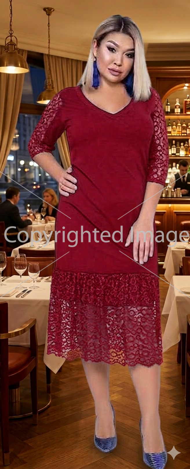 тканина - крептрикотаж і мереживо з блиском (вплетена люрексова нитка, злегка об'ємна), довжина виробу різна , довжина рукавс 42