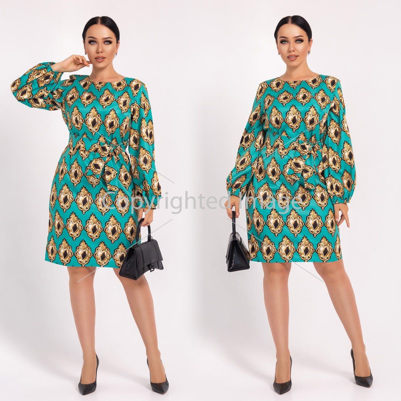 Стильна сукня прямого крою , з поясом . Рукав на резинці . Пояс із тканини йде в комплекті із сукнею .