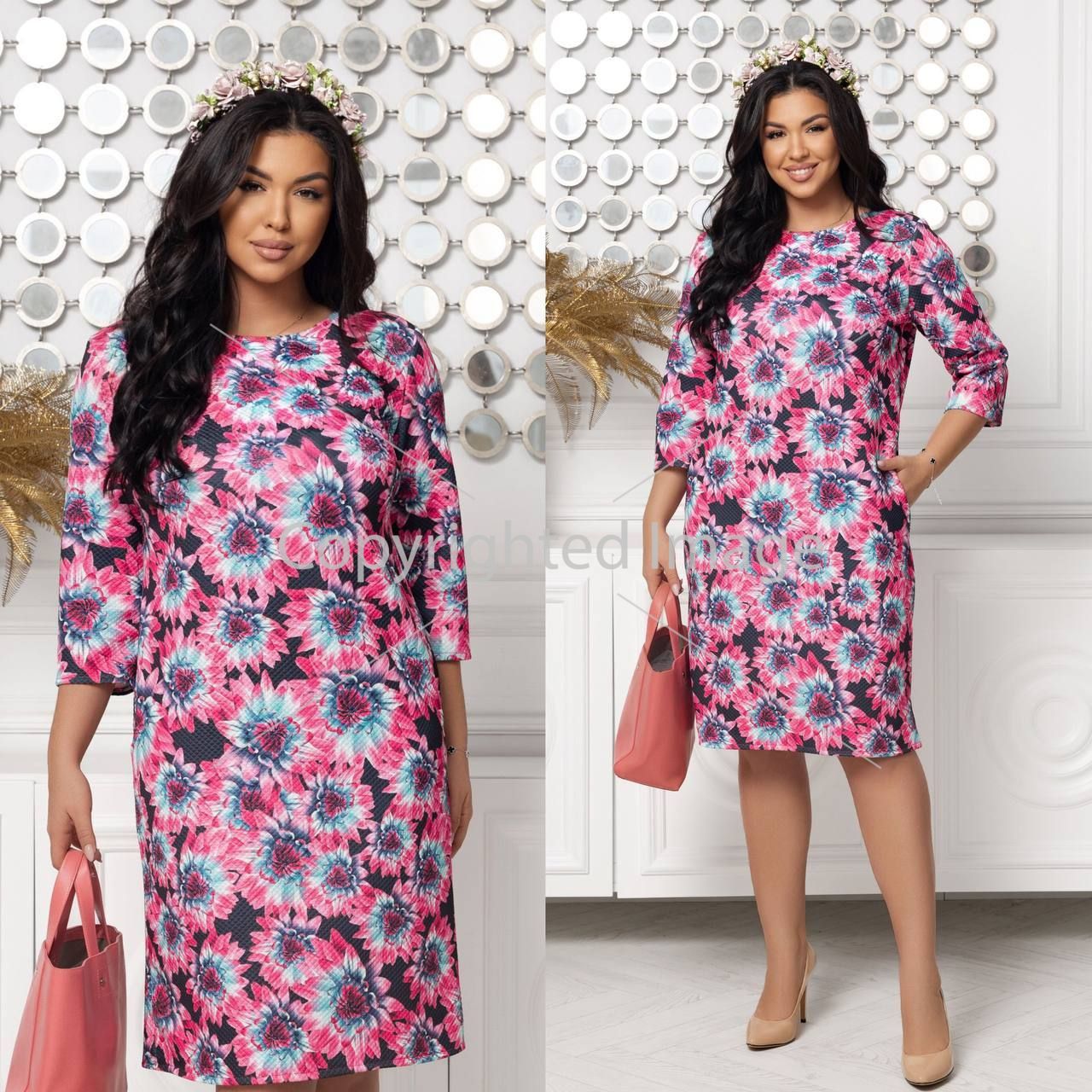 Практична сукня прямого покрою , з рукавом 3/4 , та бічними кишенями . Гарна тканина , приємна на дотик , високої якості , не кашлатиться , має гарну розтяжність .