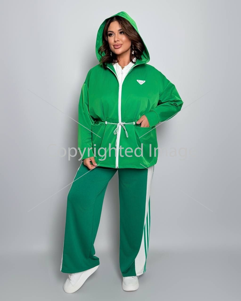Куртка з капюшоном на блискавці , з кишенями , рукав на гумці , талія на фіксаторі .