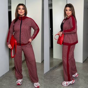 Довжина штанів : 106 см Штани з ломпасами , висока посадка , пояс на гумці , бічні кишені . Кофта прямого покрою , рукав з ломпасом , на блискавці .