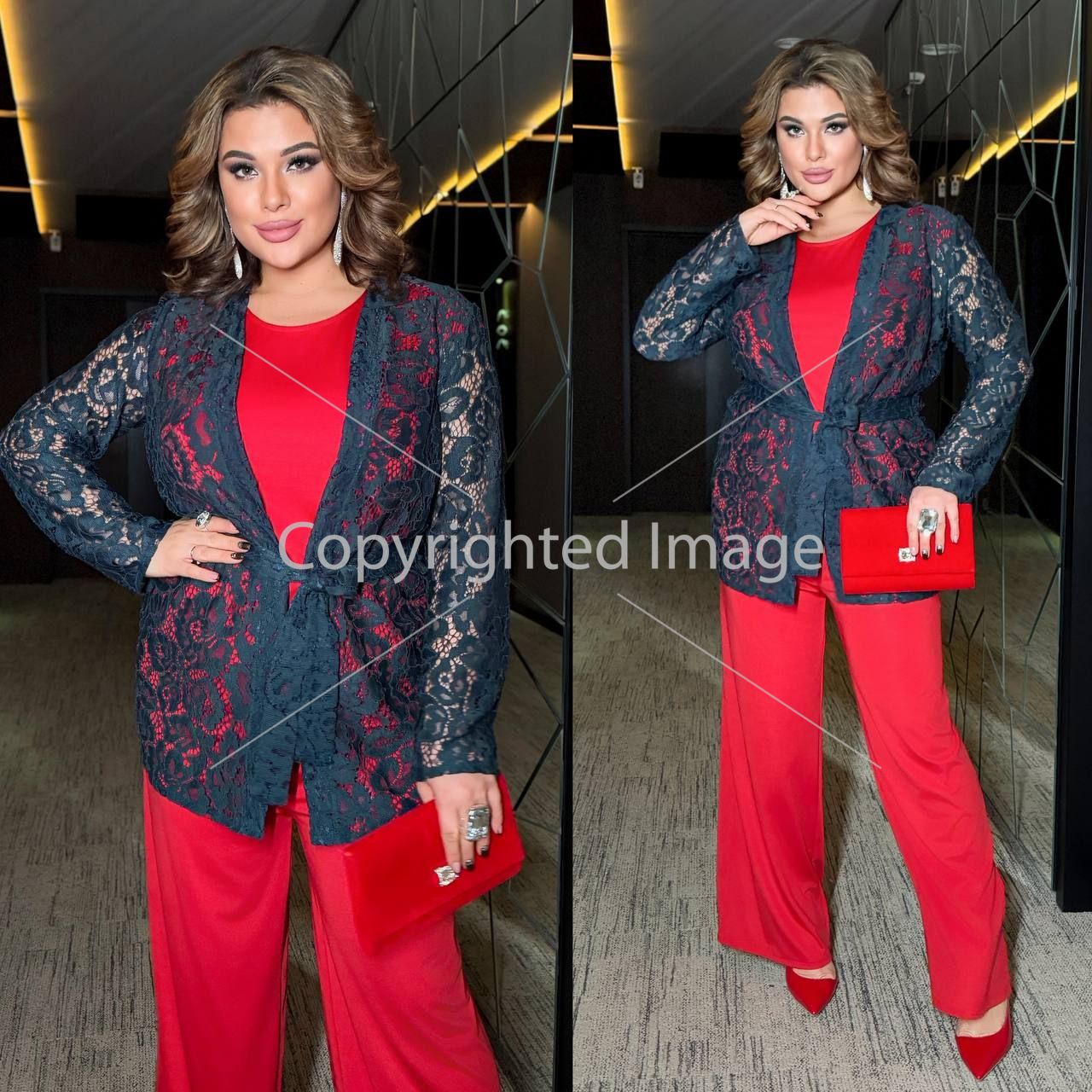 Святковий кардиган , вільного покрою , з вшитим поясом .
