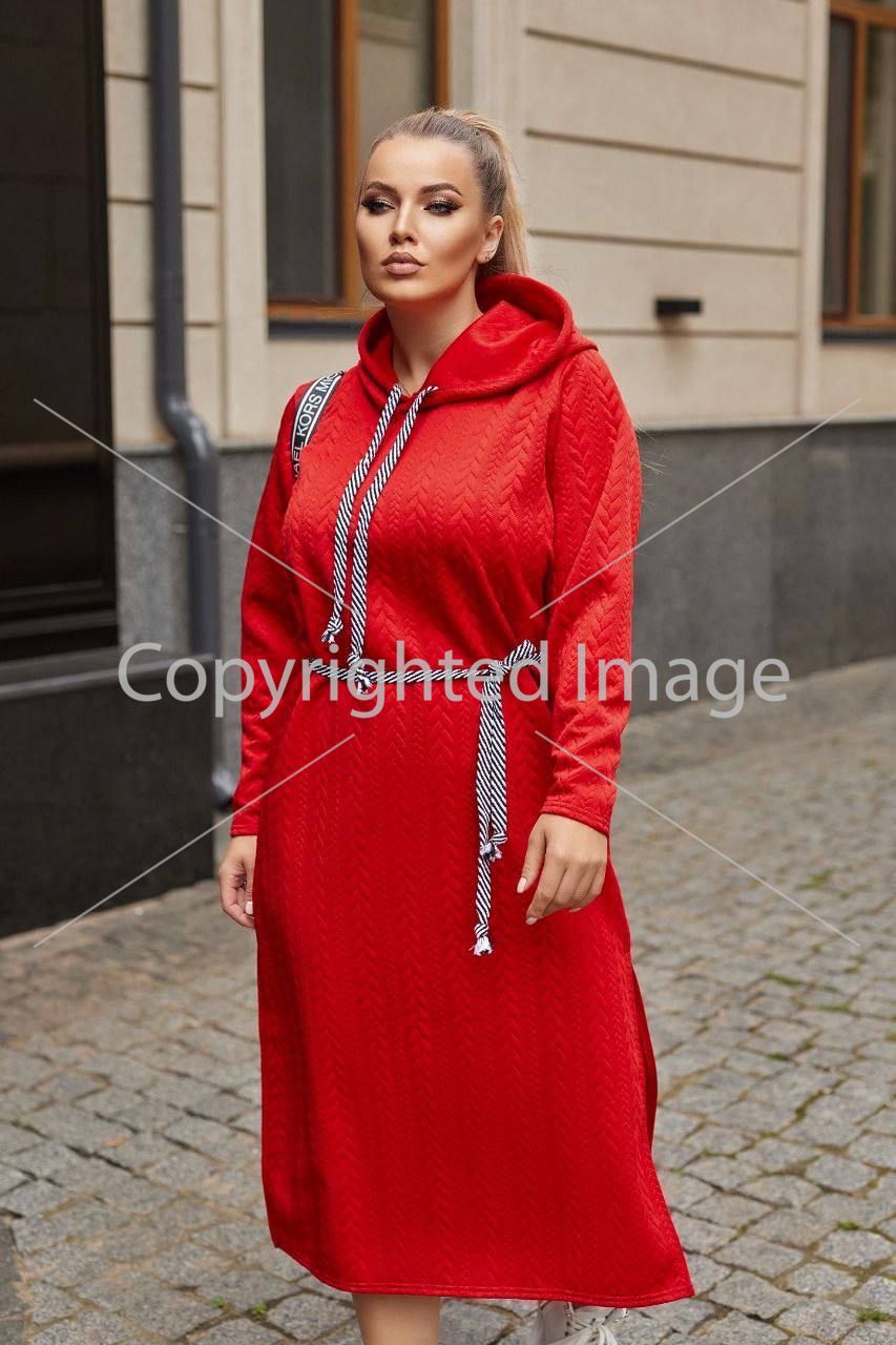 Матеріал: щільний, товстий, рельєфний трикотаж, довжина 122 см. хороша розтяжність тканини, не тонка. Сукня вільного крою. Додається пояс-канат.