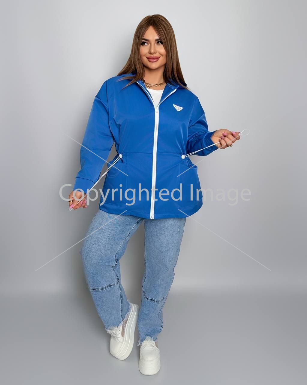 Куртка з капюшоном на блискавці , з кишенями , рукав на гумці , талія на фіксаторі .