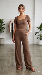 Костюм- футболка + палаццо з турецького рубчика мустанг