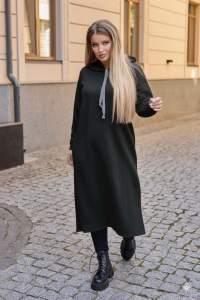 Матеріал: щільний, товстий, рельєфний трикотаж, довжина 122 см. хороша розтяжність тканини, не тонка. Сукня вільного крою. Додається пояс-канат.